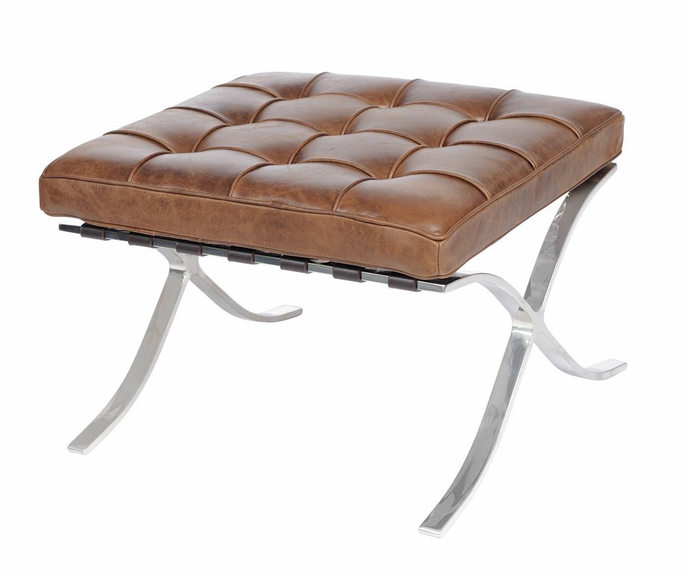 Jest to zaprojektowany w 1929 roku podnóżek, który powstał na zamówienie, i stanął w niemieckim pawilonie na wystawie w Barcelonie.,Charakterystycznie powyginana w kształt litery "X" chromowana podstawa oraz pikowana w kwadraty skóra naturalna to najbardziej charakterystyczne cechy tego podnóżka. Uzupełnieniem tego produktu jest fotel Barcelona i Barcelona stolik.,Podnóżek wykonany całkowicie ze skóry naturalnej.,