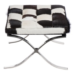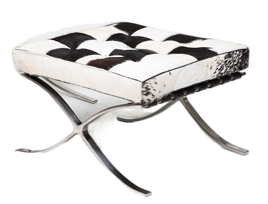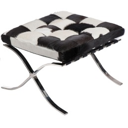 Jest to zaprojektowany w 1929 roku podnóżek, który powstał na zamówienie, i stanął w niemieckim pawilonie na wystawie w Barcelonie.,Charakterystycznie powyginana w kształt litery "X" chromowana podstawa oraz pikowana w kwadraty skóra naturalna to najbardziej charakterystyczne cechy tego podnóżka. Uzupełnieniem tego produktu jest fotel Barcelona i Barcelona stolik.,Podnóżek wykonany całkowicie ze skóry naturalnej.,