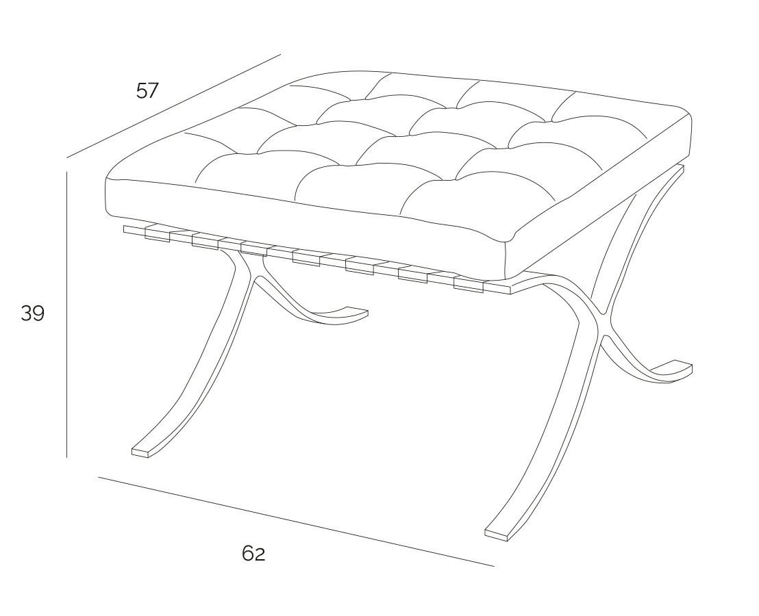 Podnóżek ten jest inspirowany projektem z 1929 roku, który został stworzony na zamówienie i zaprezentowany w niemieckim pawilonie na wystawie w Barcelonie. Wykonany z chromowanej stali, skórzanych pasów oraz tkaniny łatwoczyszczącej, która jest również trudno palna i spełnia normy ognioodporne.