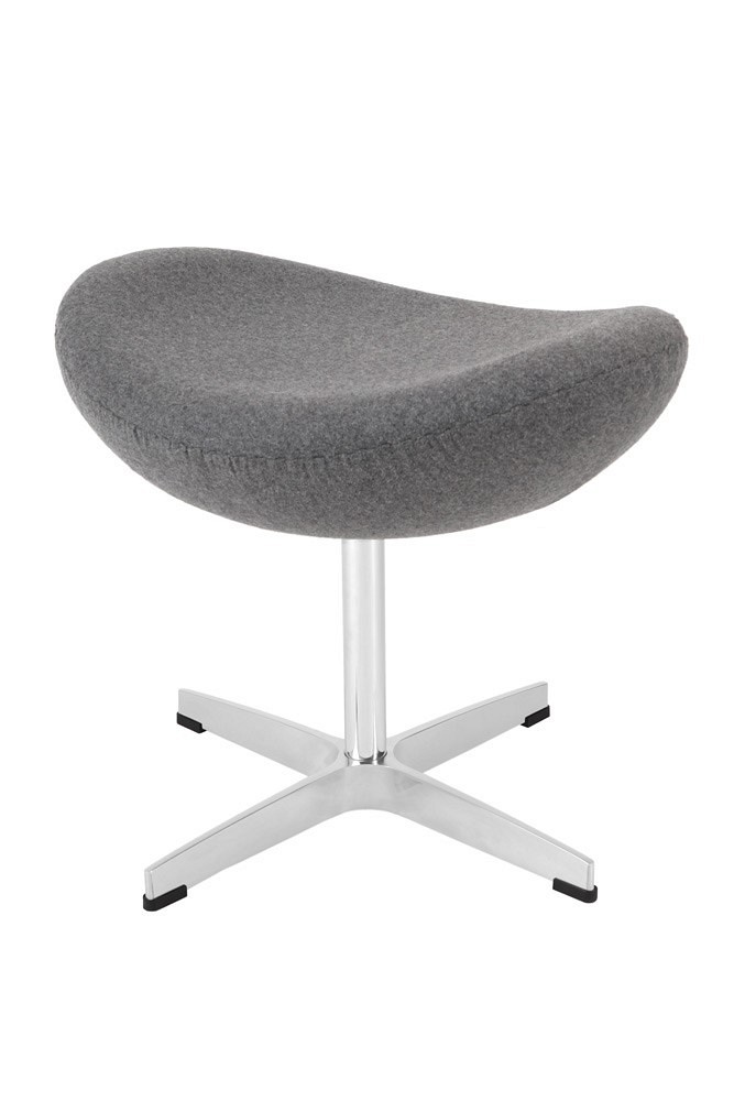 Podnóżek to mebel, który wraca do łask za sprawą swojej funkcjonalności. Nowoczensy podnóżek Jajo inspirowany projektem Egg to mebel, który sprawdzi się zarówno jako pojedynczy element wystroju jak i w komplecie z fotelami nowoczesnymi takimi jak Fotel Egg. Ponadczasowy design oraz prosta forma sprawią, że odnajdzie się on w każdym wnętrzu. Podnóżek wykonany został z kaszmiru oraz chromowanego metalu i stanowi idealne uzupełnienie fotela Jajo. Podnóżek jest obrotowy, wymaga montażu, jego maksymalne obciążenie wynosi 120kg. Wymiary kartonu: 59cm x 43cm x 48cm Max. Ilość w opakowaniu: 1szt