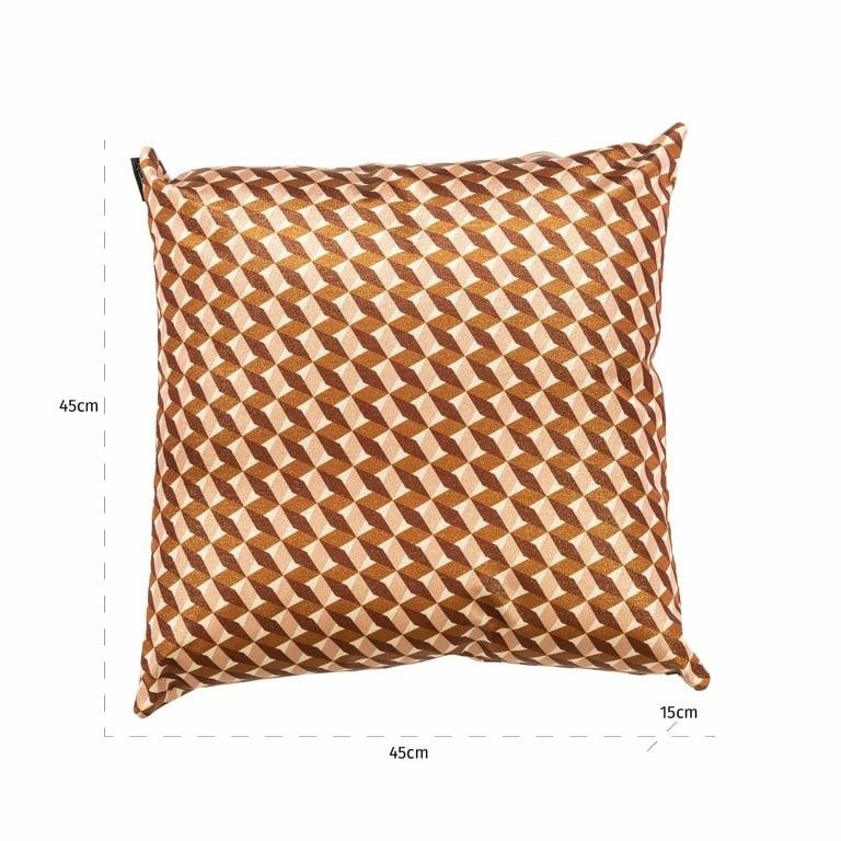 Poduszka dekoracyjna Philine to doskonały wybór dla osób ceniących elegancki design. Jej geometryczny wzór w stonowanych odcieniach brązu i beżu dodaje przestrzeni nowoczesności, a subtelny połysk tkaniny podkreśla jej wyjątkowy charakter. Idealnie sprawdzi się w salonie lub sypialni, wprowadzając do wnętrza luksusowy akcent, który z pewnością przyciągnie uwagę.