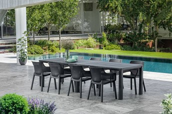 Przemyślana, prosta konstrukcja stołu, jego stabilność i funkcjonalność to niepodważalne atuty. Takie zestawienie mebli z powodzeniem stosuje się na dużych tarasach iw ogrodach, co pozwala na organizację dużych przyjęć rodzinnych lub spotkań w licznym gronie przyjaciół. przeznaczony jest na przyjęcia i spotkania w dużych grupach. Dodatkowy komfort zapewniają miękkie PODUSZKI na siedziska, które można zakupić w zestawie z naszej oferty.
