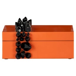 Piękne pudełko zdobi czarna dekoracja przypominająca kryształy.
