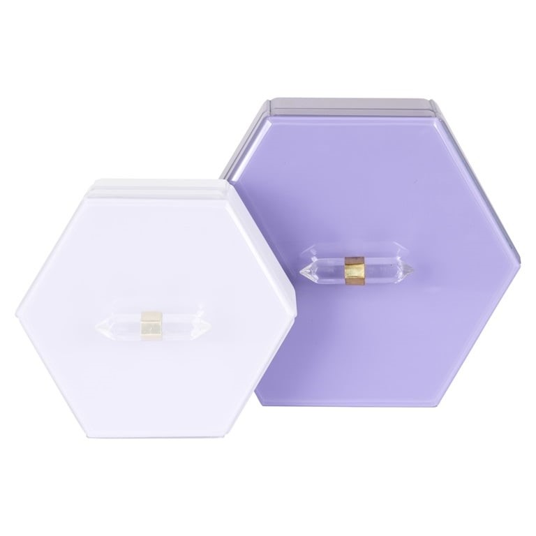 - Wyjątkowy sześciokątny kształt i fioletowe wykończenie przyciągają uwagę