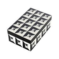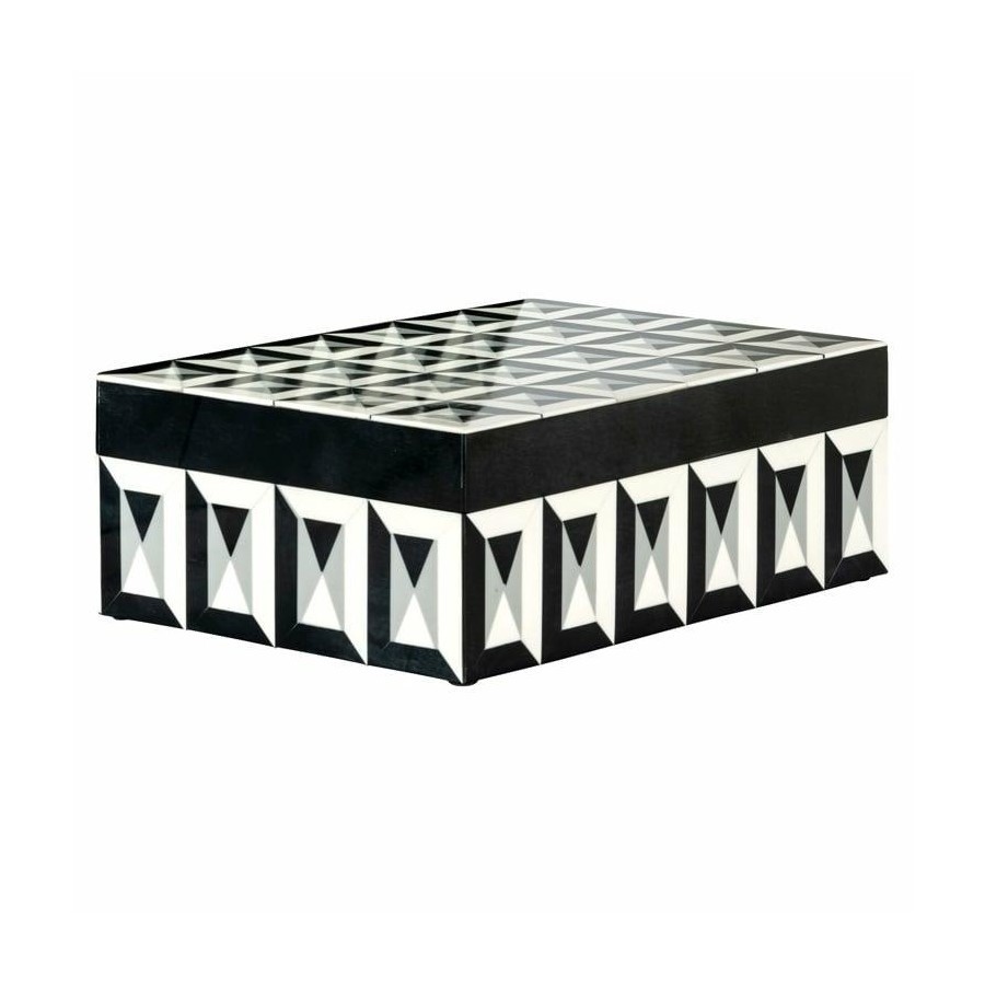 Eleganckie pudełko na biżuterię ozdobiono w przyciągające wzrok biało-czarne wzory i wykonano z solidnej żywicy.