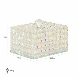 Pojemnik na biżuterię RAINBOW to wyjątkowy dodatek, który nie tylko pozwoli na eleganckie przechowywanie Twojej biżuterii, ale również stanie się ozdobą Twojej toaletki. Wykonane z dbałością o najdrobniejsze detale, pudełko zostało bogato ozdobione połyskującymi kryształami, które mienią się w różnych kolorach, wprowadzając do wnętrza luksusowy blask.