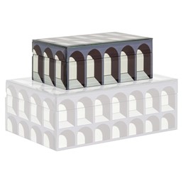 Pojemnik na biżuterię Vaya łączy funkcjonalność z wyjątkowym designem. Jego eleganckie zdobienia i trójwymiarowy efekt sprawiają, że jest nie tylko praktycznym rozwiązaniem, ale również dekoracyjnym elementem wnętrza. Wykonanie z metalu i szkła w neutralnej tonacji nadaje mu luksusowego charakteru, czyniąc go idealnym miejscem na przechowywanie Twoich najcenniejszych skarbów.