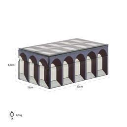 - Zdobiony subtelnymi, trójwymiarowymi wzorami przypominającymi kolumny