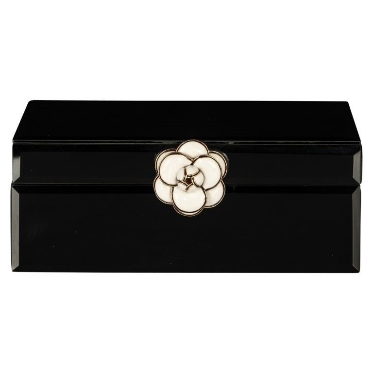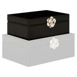 Pojemnik na biżuterię Vivy S to luksusowy sposób przechowywania cennych przedmiotów. Wykonany z wysokiej jakości czarnego MDF i szkła, łączy elegancki design z funkcjonalnością. Po otwarciu wewnątrz ukazuje się piękna biało-złota róża, która dodaje całości subtelnej elegancji, sprawiając, że pojemnik staje się nie tylko praktycznym, ale również ozdobnym elementem wnętrza.