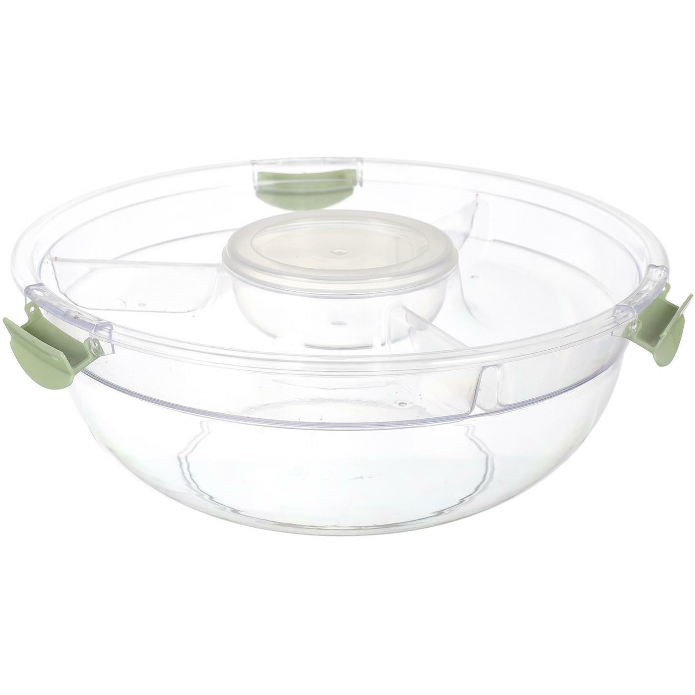 Pojemnik na sałatkę Bain de Soleil w kolorze zielonym to praktyczne i stylowe rozwiązanie do przechowywania i serwowania sałatek. Wykonany z wysokiej jakości tworzywa sztucznego, jest trwały i łatwy w utrzymaniu czystości. Jego przezroczysta pokrywka pozwala na łatwe sprawdzenie zawartości bez konieczności otwierania, co pomaga zachować świeżość potraw.