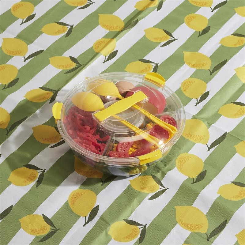 Pojemnik na sałatkę Bain de Soleil w kolorze żółtym to praktyczne i stylowe rozwiązanie do przechowywania i serwowania sałatek. Wykonany z wysokiej jakości tworzywa sztucznego, jest trwały i łatwy w utrzymaniu czystości. Jego przezroczysta pokrywka pozwala na łatwe sprawdzenie zawartości bez konieczności otwierania, co pomaga zachować świeżość potraw.