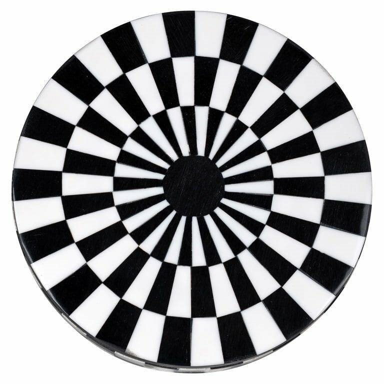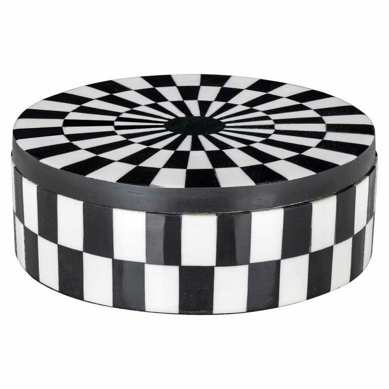 Całość ozdobiono geometrycznym wzorami w kolorystyce biało-czarnej.