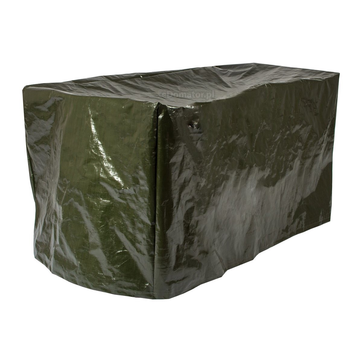 Pokrowiec na meble 4-osobowe w kolorze zielonym to wytrzymała osłona, która chroni zestawy mebli ogrodowych przed warunkami atmosferycznymi jak deszcz czy słońce. Jest wykonany z mocnego, wodoodpornego materiału, łatwy w użyciu i przechowywaniu. Jego zielony kolor wpisuje się w ogrodowy krajobraz, zapewniając dyskrecję i ochronę dla Twoich mebli.
