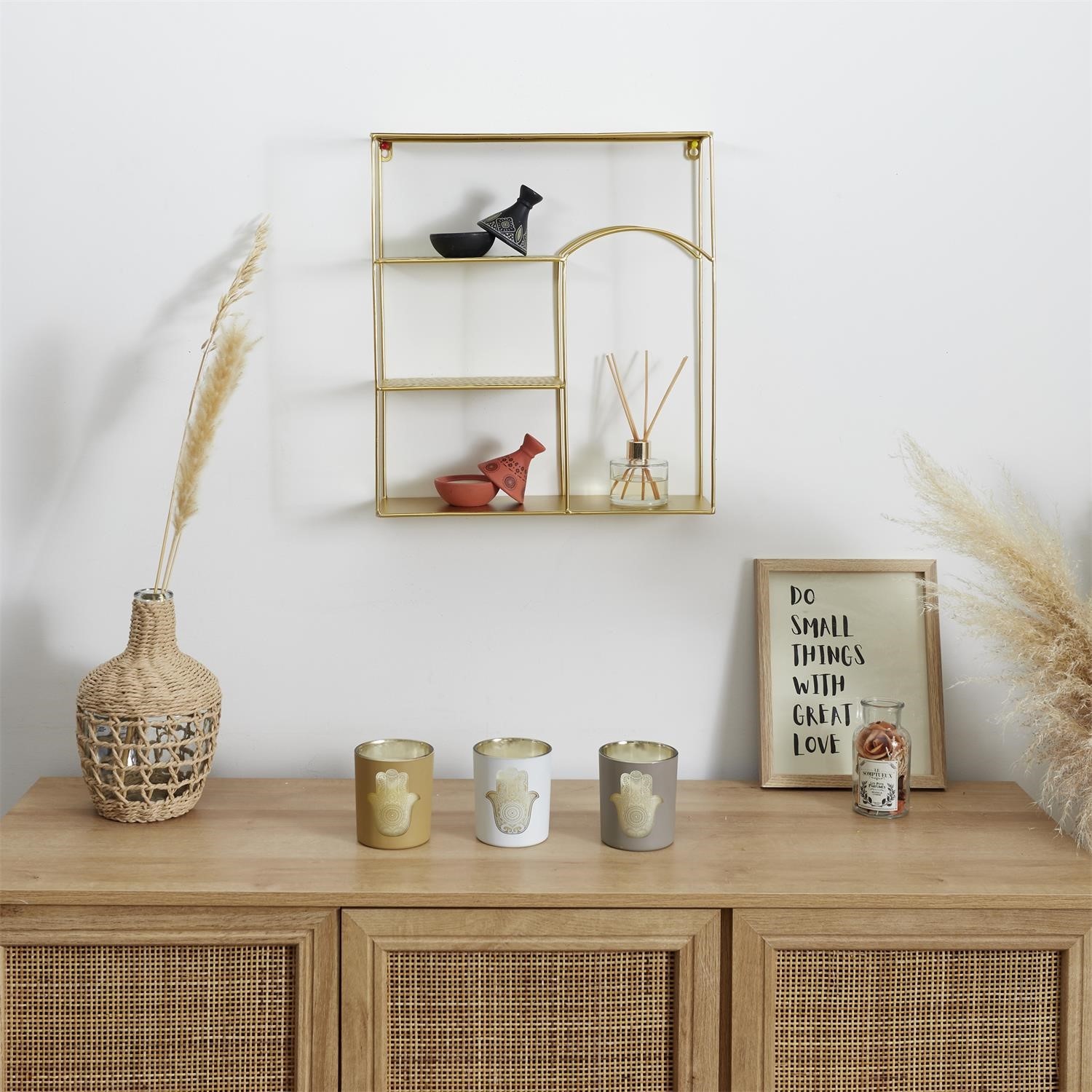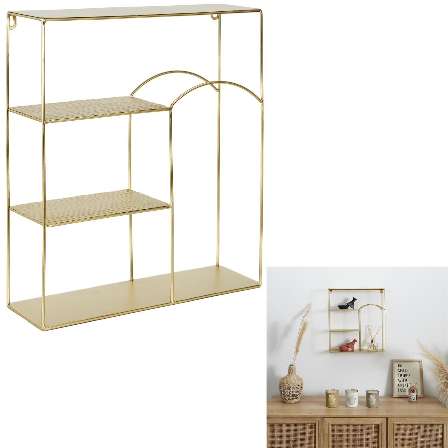 Półka Alia w kolorze złotym to stylowy i funkcjonalny element dekoracyjny, który doda elegancji każdemu wnętrzu. Wykonana w całości z metalu, półka jest solidna i trwała, co gwarantuje długotrwałe użytkowanie. Jej nietypowy kształt sprawia, że jest nie tylko praktyczna, ale również stanowi wyjątkową ozdobę.