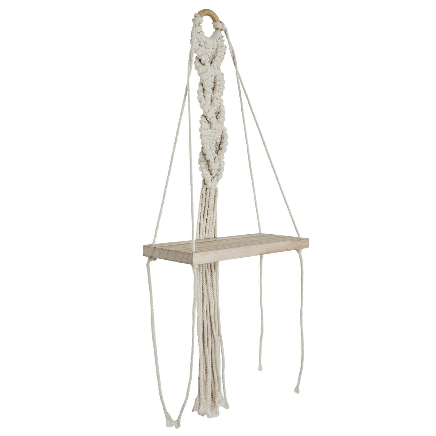 Półka Boho mała macrama beżowa to stylowy i funkcjonalny dodatek do każdego wnętrza. Wykonana z wysokiej jakości bawełny i drewna sosnowego, półka ta wyróżnia się trwałością i estetyką. Jej pleciona konstrukcja w stylu macramy nadaje wnętrzu lekkości i naturalnego uroku, doskonale komponując się z jasnymi, naturalnymi aranżacjami.