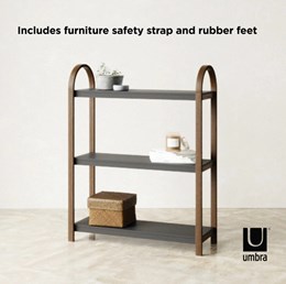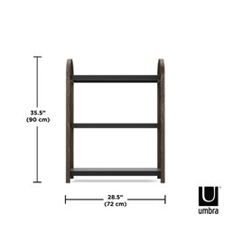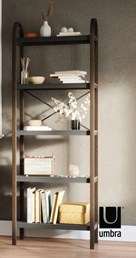 Pięciopoziomowy stojak UMBRA BELLWOOD z czarnego orzecha. Dekoracyjna i zajmująca mało miejsca szafa wolnostojąca Bellwood to uniwersalna i funkcjonalna szafa z pięcioma półkami, dzięki którym zmieścimy ogromną ilość rzeczy, takich jak książki, czasopisma czy drzewa. Idealnie skomponuje się z innymi produktami z kolekcji Bellwood. Posiada akcenty z prawdziwego drewna i wbudowany uchwyt ułatwiający przenoszenie. Świetnie prezentuje się w salonie, domowym gabinecie czy sypialni. Jest łatwy w montażu i zawiera wszystkie niezbędne instrukcje i sprzęt.