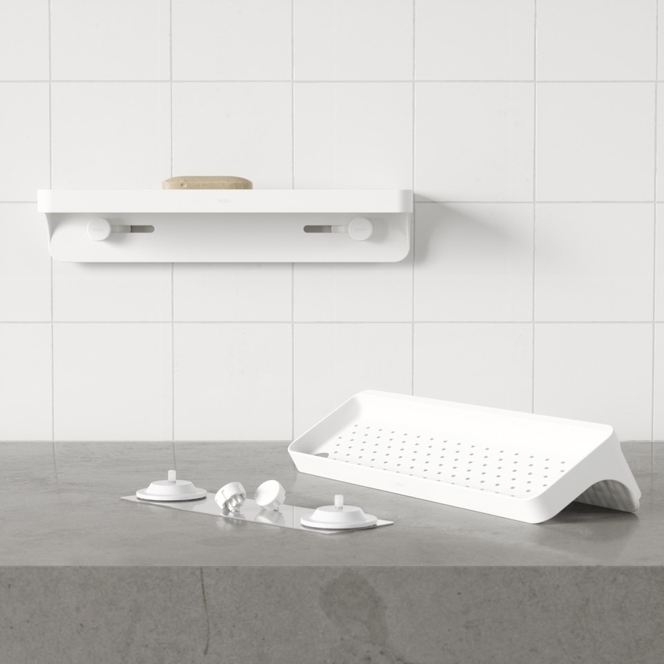 - Praktyczny organizer wyposażony w wodoodporne, samoprzylepne mocowania, odpowiednie do różnych powierzchni, takich jak płytki, sucha ściana czy beton