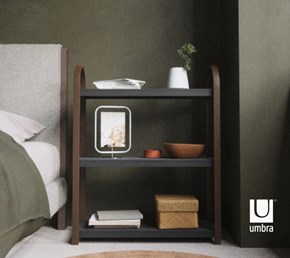 Półka stojąca UMBRA BELLWOOD w kolorze czarnego orzecha. Dekoracyjna i zajmująca mało miejsca szafka wolnostojąca Bellwood to uniwersalna i funkcjonalna szafka z trzema półkami, dzięki którym przechowamy dużą ilość rzeczy, takich jak książki, czasopisma czy rtęć. Idealnie skomponuje się z innymi produktami z kolekcji Bellwood. Posiada akcenty z prawdziwego drewna i wbudowany uchwyt ułatwiający przenoszenie. Świetnie prezentuje się w salonie, domowym gabinecie czy sypialni. Jest łatwy w montażu. Zestaw montażowy w zestawie.