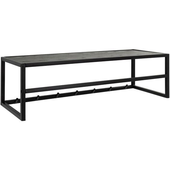 Półka/wieszak Seaford w kolorze czarnym to eleganckie i funkcjonalne rozwiązanie do każdego przedpokoju. Wykonana z metalu malowanego proszkowo oraz płyty MDF w okleinie, łączy w sobie trwałość i nowoczesny design. Jej minimalistyczny wygląd sprawia, że doskonale wpasuje się w różne aranżacje wnętrz, od industrialnych po loftowe.
