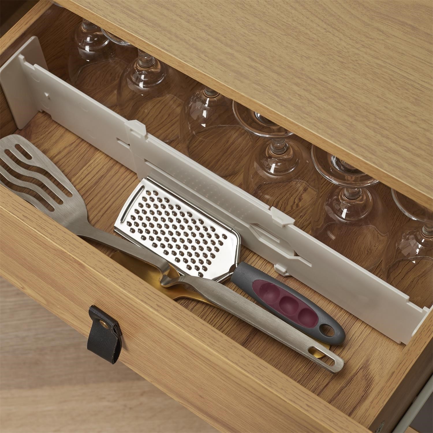 Regulowane przegrody do szuflad w kolorze białym to praktyczne rozwiązanie, które pomaga utrzymać porządek w szufladach. Wykonane z trwałego tworzywa sztucznego, są łatwe w montażu i demontażu, co pozwala na dostosowanie przestrzeni do indywidualnych potrzeb. Idealne do organizowania różnych przedmiotów, takich jak sztućce, przybory kuchenne, biurowe czy kosmetyki. Biały kolor nadaje im nowoczesny i estetyczny wygląd, który pasuje do każdego wnętrza. Dzięki regulowanym przegrodom, można efektywnie wykorzystać przestrzeń