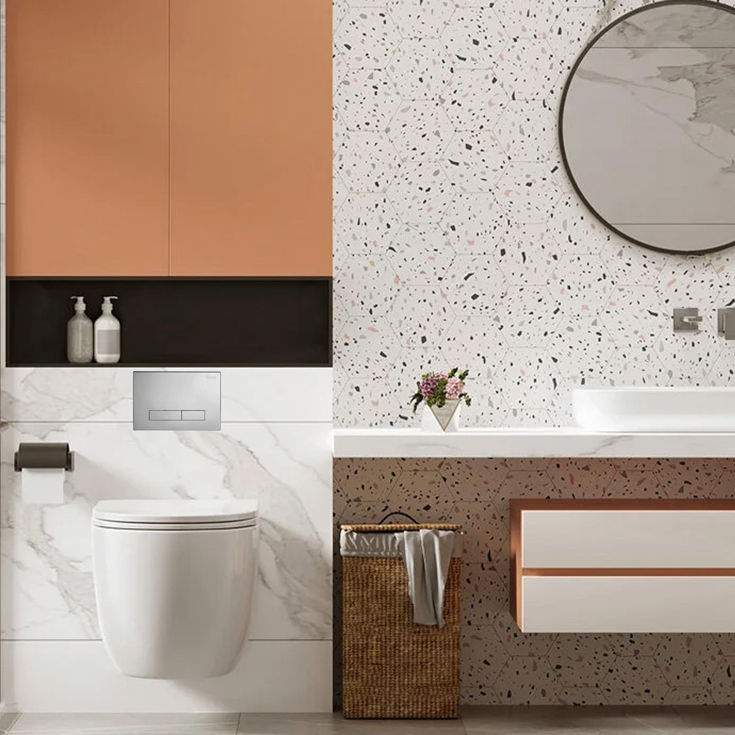 Przycisk Typu H do Stelaża Podtynkowego WC w eleganckim to doskonałe rozwiązanie dla każdej nowoczesnej łazienki. Wykonany z wysokiej jakości materiałów, przycisk ten wyróżnia się wyjątkową trwałością i niezawodnością. Jego matowe wykończenie dodaje wnętrzu luksusowego charakteru, a minimalistyczny design sprawia, że idealnie komponuje się zarówno z nowoczesnymi, jak i klasycznymi aranżacjami łazienkowymi.