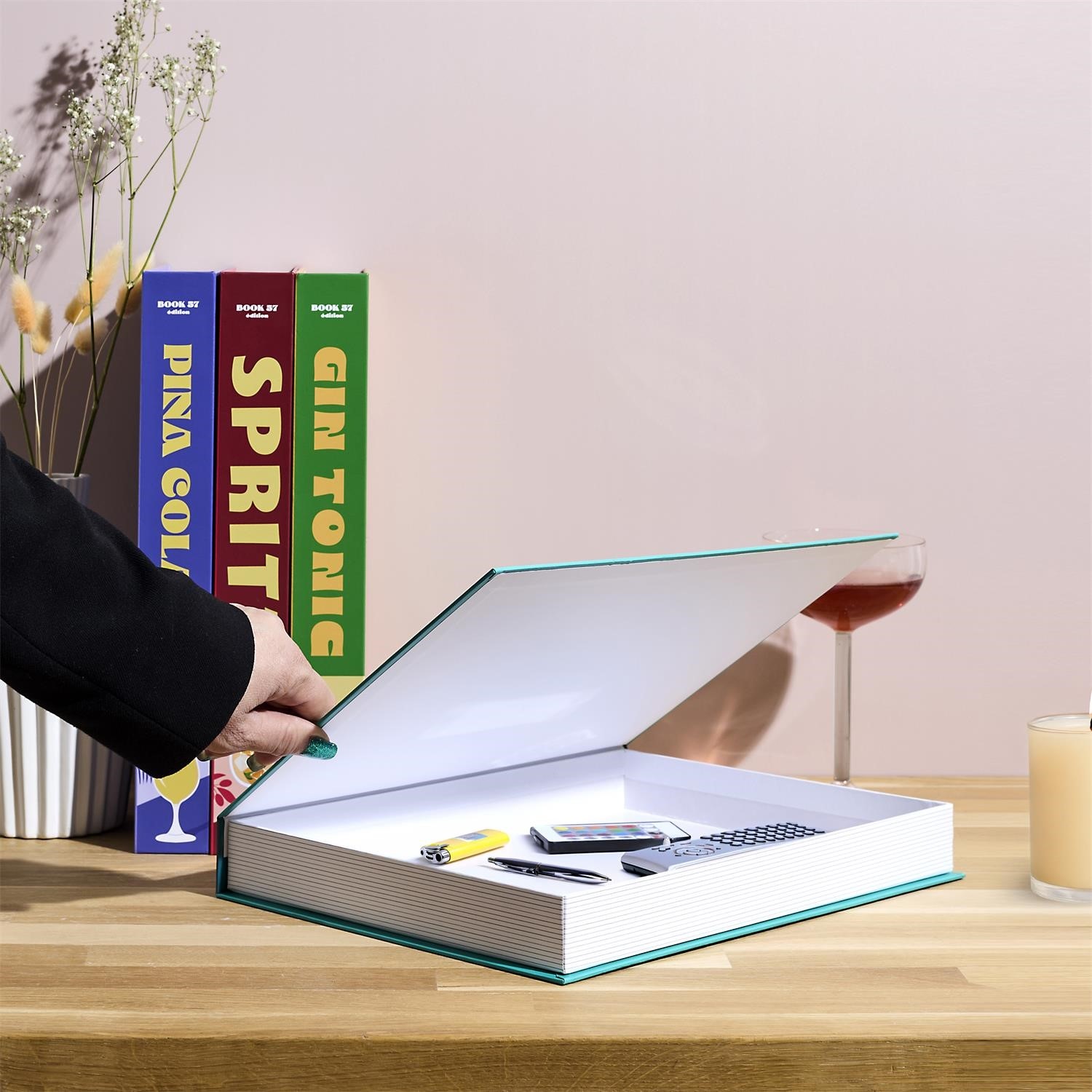 Pudełko dekoracyjne w formie książki to stylowy dodatek, który łączy estetykę z praktycznym zastosowaniem. Inspiracje klasycznymi koktajlami nadają mu nowoczesny, lekko humorystyczny charakter, idealnie wpisujący się w współczesne wnętrza. Doskonale sprawdzi się jako schowek na drobiazgi, piloty, biżuterię lub dokumenty, jednocześnie pełniąc funkcję dekoracyjną. Ustawione na półce lub stoliku kawowym tworzy ciekawy akcent aranżacyjny.