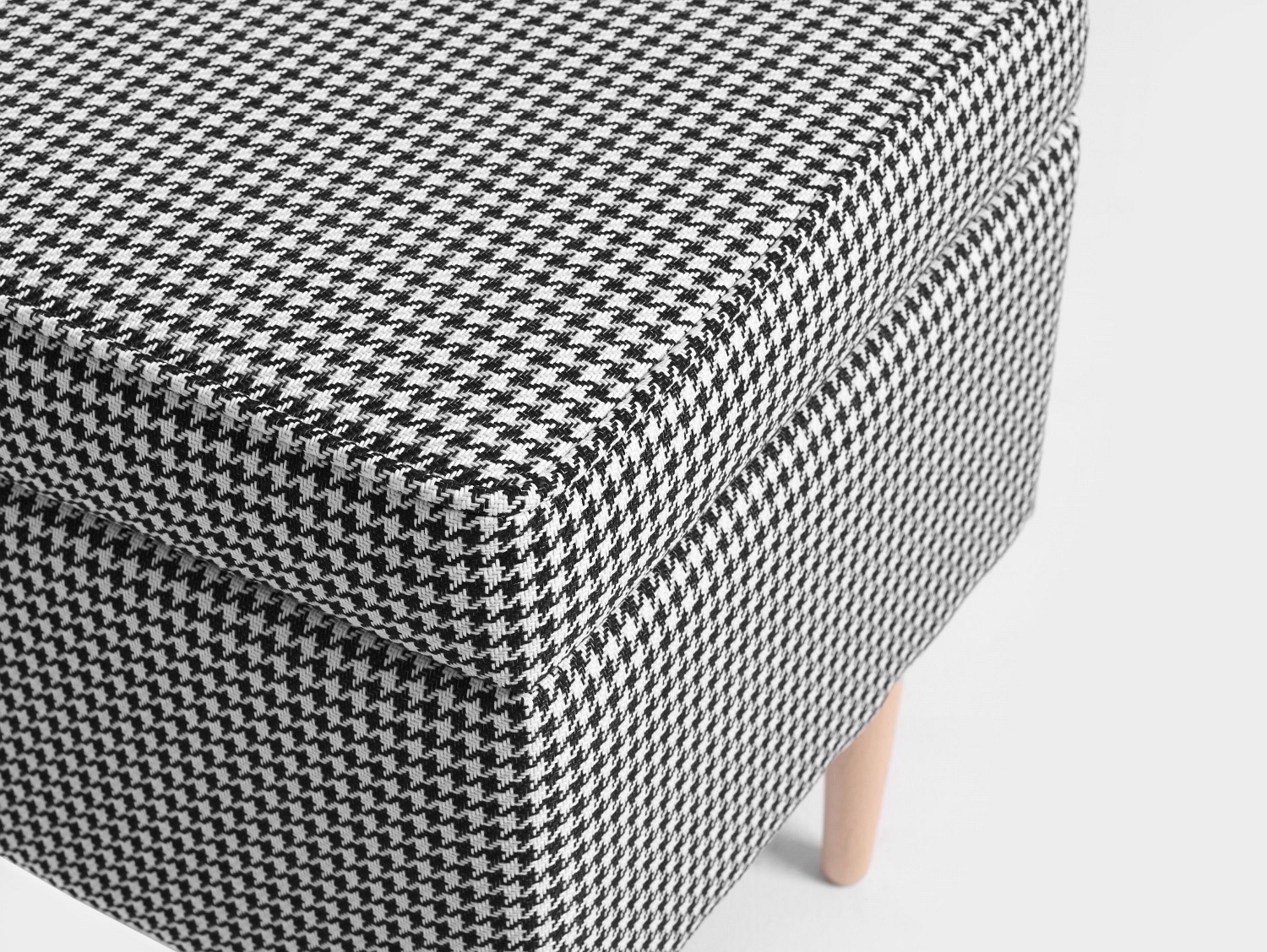Bardzo modna pufa EDI 40 jest wyjątkowym meblem, który wspaniałe uzupełni wystrój Twojego salonu czy sypialni. To produkt, który jest wykonany z wysokiej jakości komponentów, takich jak aksamit oraz lite drewno w jasnym kolorze dębu. Modny deseń tapicerki a’la pepitka jest hitem tego sezonu i idealnie pasuje do wnętrz zaaranżowanych w stylu nowoczesnym, retro oraz klasycznym. Zdecyduj się na ten ponadczasowy wyrób meblarski!