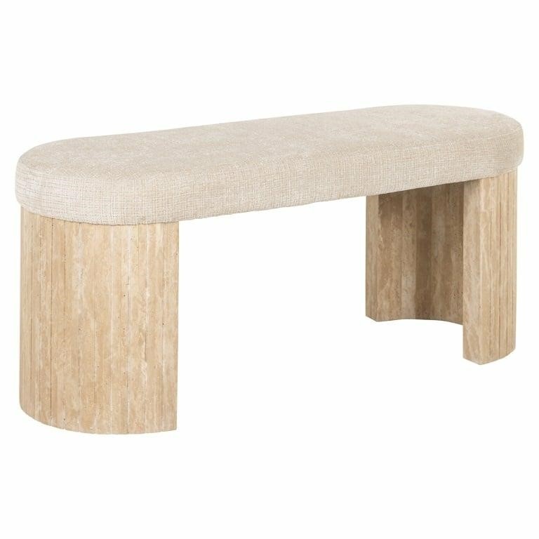 Pufa GALLICE LONG to elegancka i nowoczesna propozycja, która łączy styl z wygodą. Podłużne siedzisko, pokryte piękną beżową tkaniną, zapewnia komfort, a trawertynowa podstawa dodaje meblowi naturalnego, wyrafinowanego charakteru. Dzięki stonowanej kolorystyce i prostej formie, pufa doskonale pasuje do nowoczesnych aranżacji, a dostępność wersji okrągłej pozwala na dopasowanie do różnych przestrzeni.