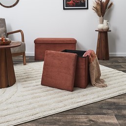 Pufa VELS SCOTT składana w kolorze teracotta to wyjątkowy element, który łączy w sobie styl i funkcjonalność. Jej ciepły, ziemisty odcień dodaje wnętrzom przytulności i charakteru, doskonale wpisując się w nowoczesne oraz klasyczne aranżacje. Wykonana z wysokiej jakości materiałów, pufa jest nie tylko estetyczna, ale również wygodna. Dzięki możliwości składania zajmuje mało miejsca, co czyni ją idealnym rozwiązaniem do mniejszych przestrzeni – łatwo schować ją w szafie lub pod łóżkiem, gdy nie jest potrzebna. Pufa VELS SCOTT może służyć jako dodatkowe siedzenie, podnóżek, a także praktyczny schowek na drobiazgi. Jej solidna konstrukcja zapewnia trwałość, a miękkie wykończenie gwarantuje komfort użytkowania.
