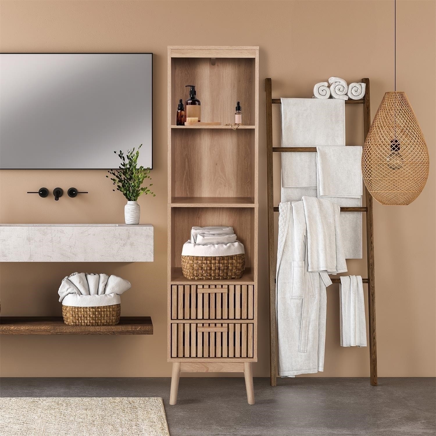 Regał Klaus to praktyczny mebel dostępny w dwóch wariantach: z dziewięcioma półkami dla maksymalnej przestrzeni do przechowywania oraz w wąskiej wersji z dwiema szufladami, idealnej do mniejszych pomieszczeń. Naturalne wykończenie dodaje mu uroku i sprawia, że pasuje do wielu aranżacji.