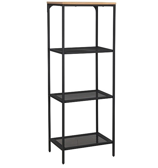 Wykonany z wysokiej jakości płyty laminowanej wspartej metalowym stelażem, regał LEX B jest nie tylko trwały, ale także stabilny. Czarny matowy kolor stelaża harmonijnie komponuje się z ciepłym odcieniem dębu, tworząc elegancki kontrast.