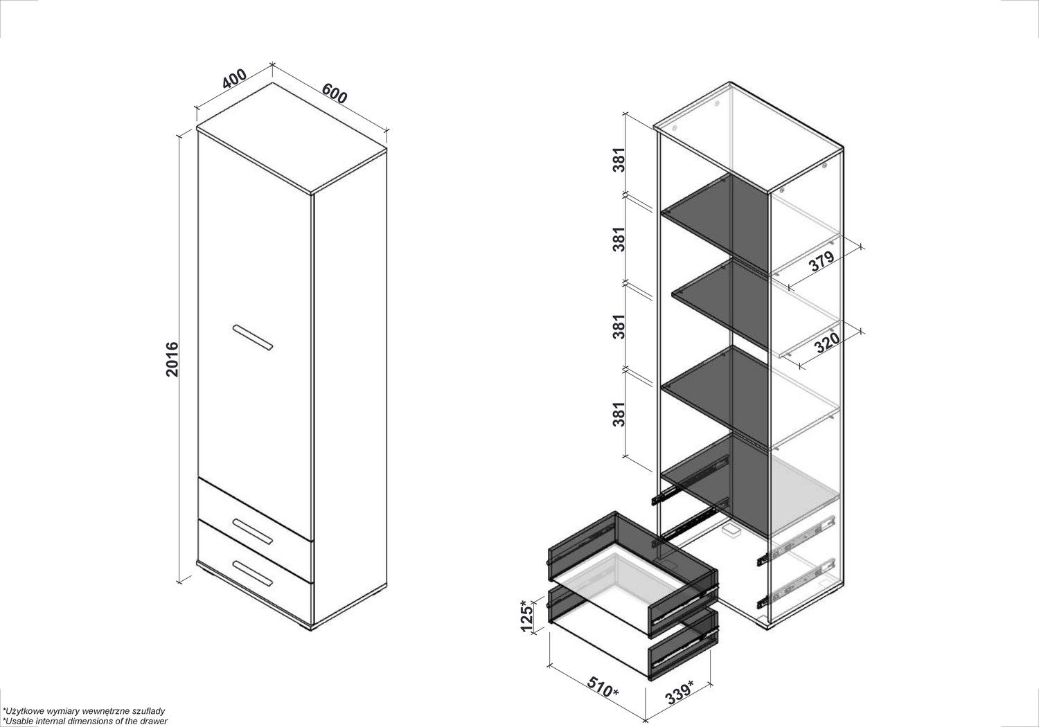 | Informacje dodatkowe | Półki, Szuflady |