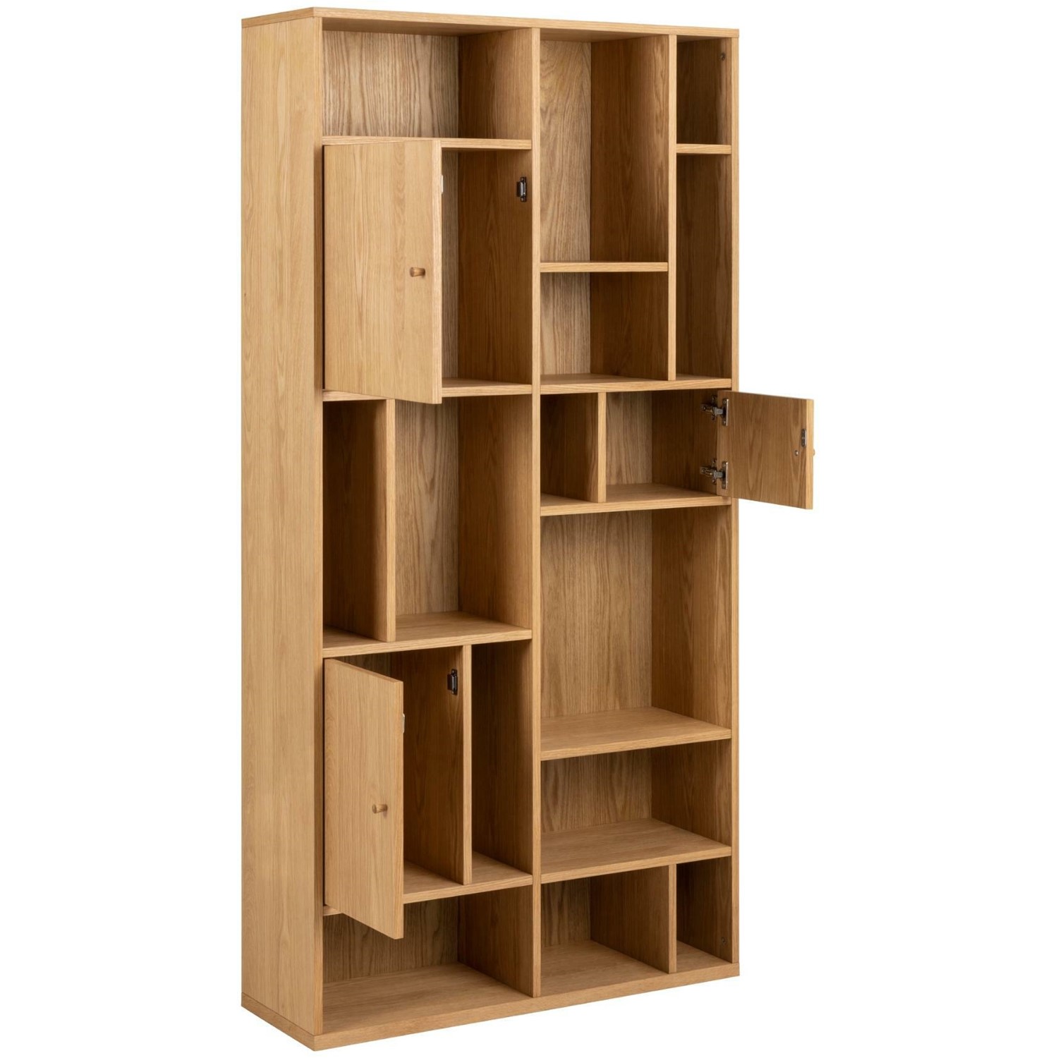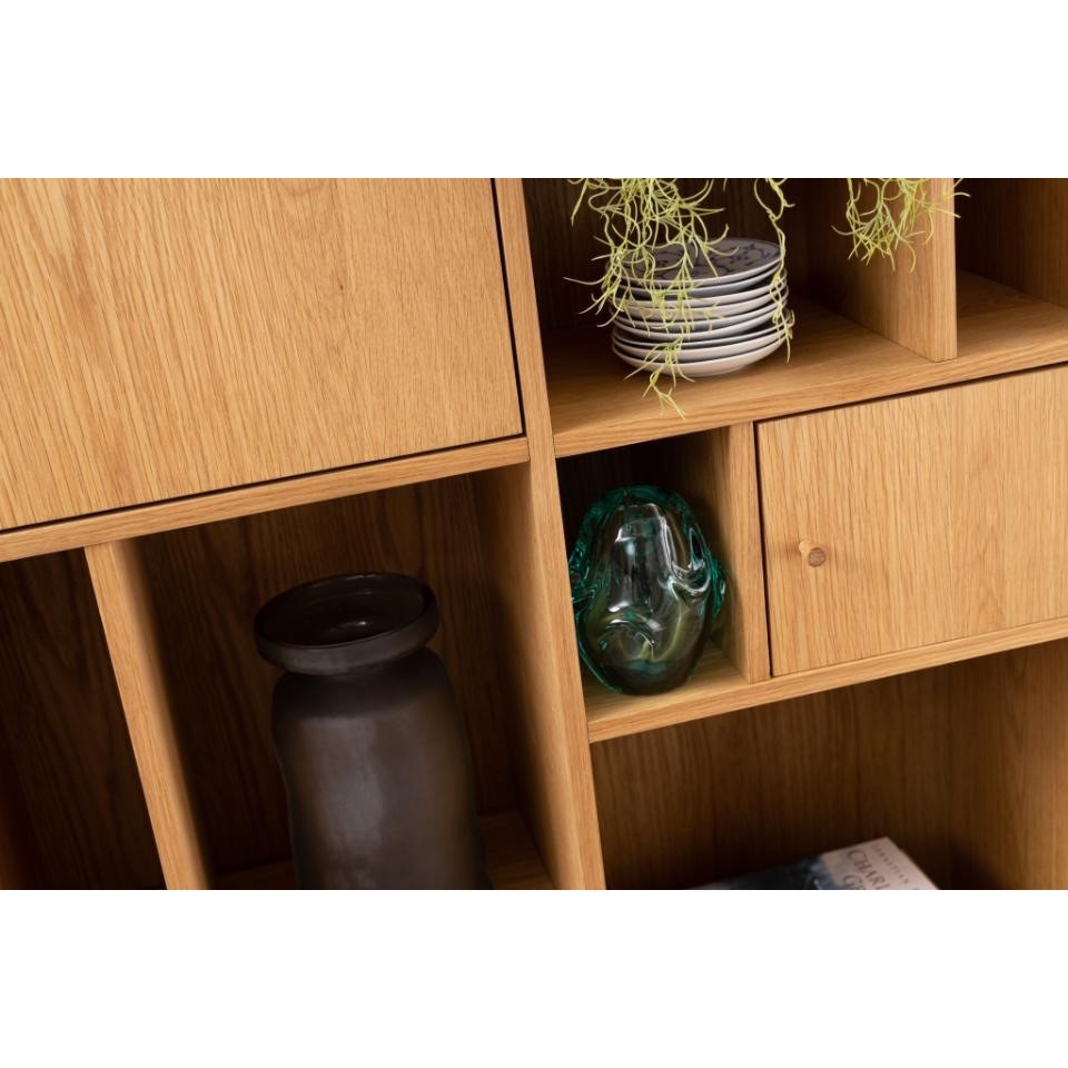Regał Rangoon szeroki dąb to elegancki i funkcjonalny mebel, który doskonale wzbogaci każde wnętrze. Wykonany z wysokiej jakości MDF i olejowanego forniru dębowego, wyróżnia się wyrazistym wzorem słojów i ciepłym wykończeniem. Jego asymetryczne rozmieszczenie otwartych i zamkniętych schowków nadaje mu nowoczesny i oryginalny wygląd, czyniąc go zarówno praktycznym, jak i designerskim elementem dekoracyjnym.