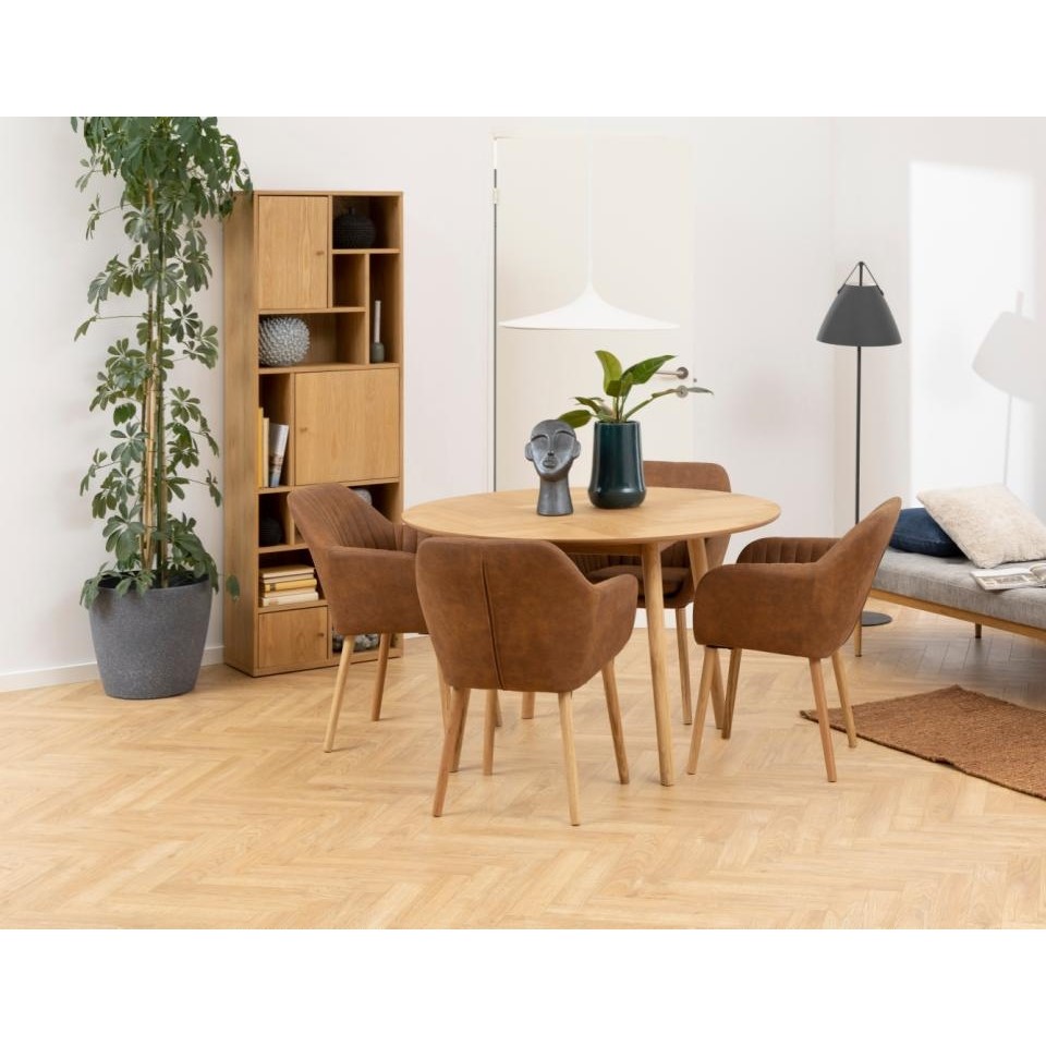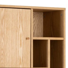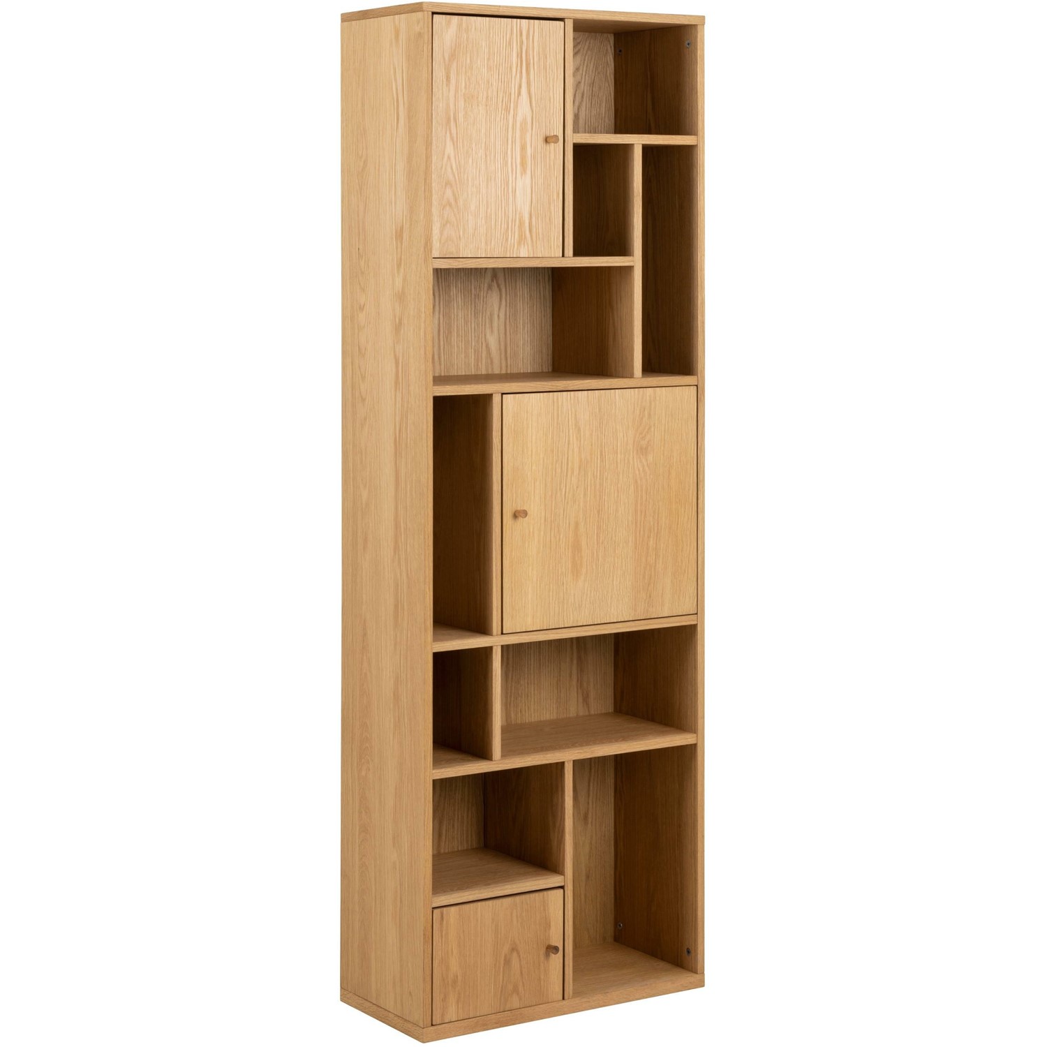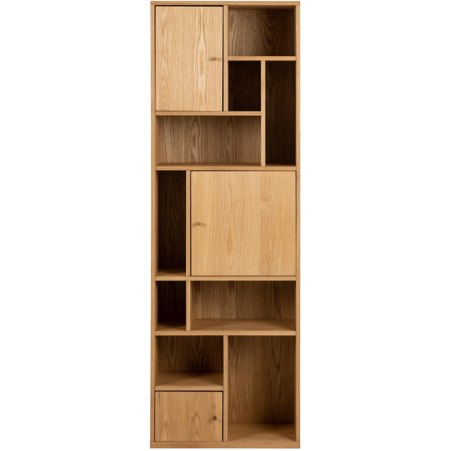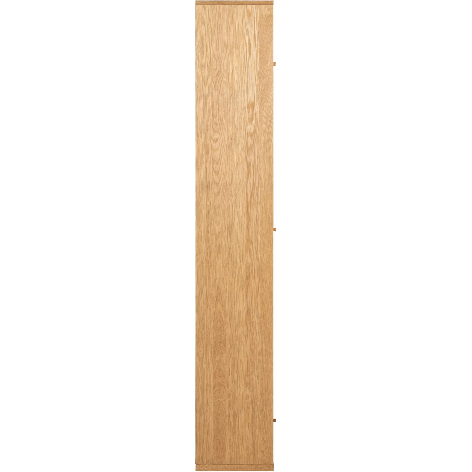 Regał Rangoon wąski dąb to nowoczesny i stylowy mebel, który doskonale sprawdzi się w każdym wnętrzu. Wykonany z wysokiej jakości MDF i olejowanego forniru dębowego, wyróżnia się wyrazistym wzorem słojów i ciepłym wykończeniem. Jego asymetryczne rozmieszczenie otwartych i zamkniętych schowków nadaje mu unikalny wygląd, łącząc funkcjonalność z estetyką.