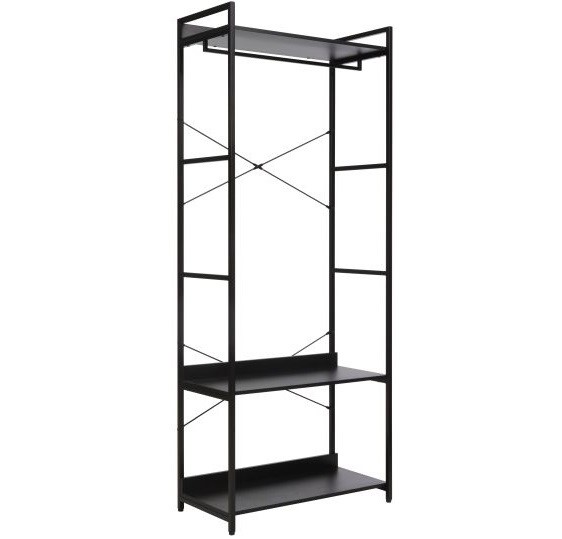 Regał RIN B to elegancki mebel, który doskonale wpisuje się w różne aranżacje wnętrz. Blat wykonany jest z płyty laminowanej w czarnym kolorze. Stelaż to metal w kolorze czarnego matu. Regał jest rozkładany, co pozwala na dostosowanie go do liczby przechowywanych przedmiotów. Czarny matowy stelaż i kolor blatu nadają mu nowoczesny wygląd.