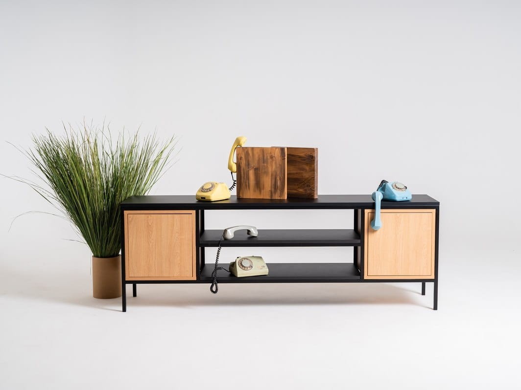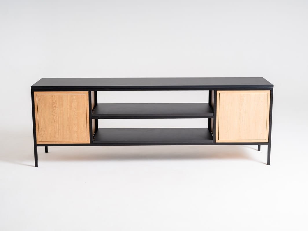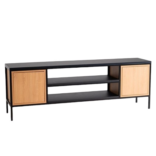 Prezentowany regał RTV to stylowy mebel idealny do nowoczesnego salonu. Dzięki przemyślanej konstrukcji umożliwia wygodne ustawienie telewizora oraz przechowywanie sprzętu multimedialnego. Wyposażony jest w praktyczne półki oraz zamykane szafki, które ułatwiają organizację i przechowywanie akcesoriów. Jego uniwersalna forma pasuje zarówno do wnętrz minimalistycznych, jak i bardziej klasycznych. Regał wykonano z solidnych materiałów, dzięki czemu jest trwały i odporny na codzienne użytkowanie. Kompaktowy rozmiar sprawia, że zmieści się nawet w niewielkim salonie. To połączenie funkcjonalności i elegancji, które podnosi komfort codziennego korzystania z multimediów.