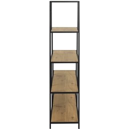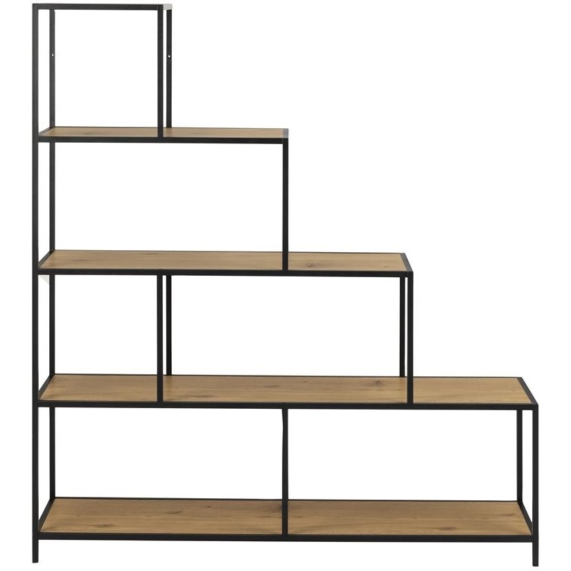 Jego asymetryczna konstrukcja przypominająca schody przyciąga wzrok i dodaje wnętrzu unikalnego charakteru. Półki o zróżnicowanej długości umożliwiają estetyczne eksponowanie książek, roślin doniczkowych, pamiątek i innych dekoracji. Regał Seaford jest wszechstronny i może być używany w salonie, gabinecie, pokoju młodzieżowym, a nawet w przestrzeniach komercyjnych, takich jak biura czy sklepy.