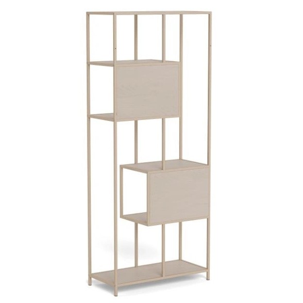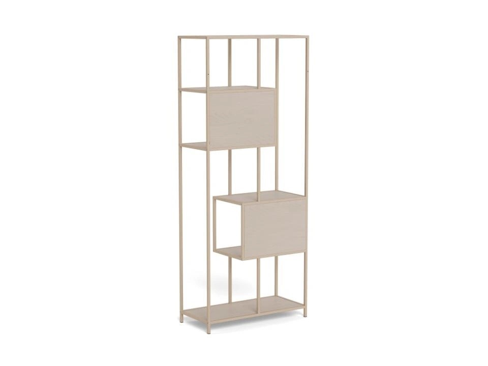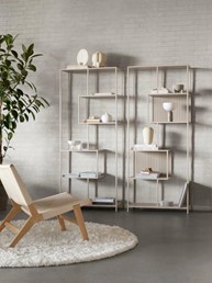 Jego asymetryczna konstrukcja przyciąga wzrok i pozwala na kreatywne aranżacje. Regał posiada sześć półek o różnych rozmiarach, co umożliwia estetyczne eksponowanie książek, roślin, dekoracji i innych przedmiotów. Dzięki otwartej konstrukcji, dostęp do przechowywanych rzeczy jest łatwy i wygodny.