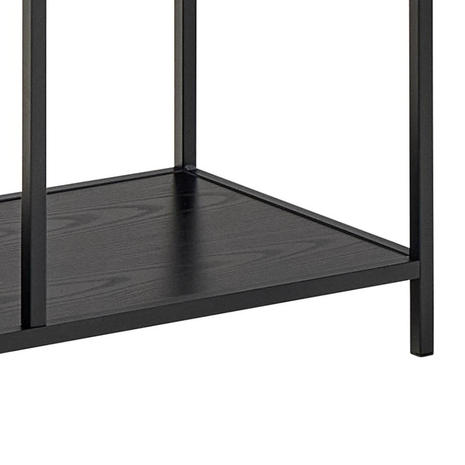 Regał Seaford II złoty/czarny to elegancki i nowoczesny mebel, który doskonale sprawdzi się w różnych wnętrzach. Wykonany z wytrzymałego metalowego szkieletu malowanego proszkowo na złoto, prezentuje się stylowo i solidnie. Półki z płyty MDF w kolorze czarnym imitują drewno, dodając mu naturalnego uroku.