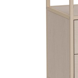 Regał Seaford II złoty/czarny to elegancki i nowoczesny mebel, który doskonale sprawdzi się w różnych wnętrzach. Wykonany z wytrzymałego metalowego szkieletu malowanego proszkowo na złoto, prezentuje się stylowo i solidnie. Półki z płyty MDF w kolorze czarnym imitują drewno, dodając mu naturalnego uroku.