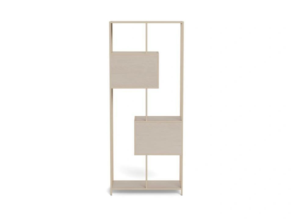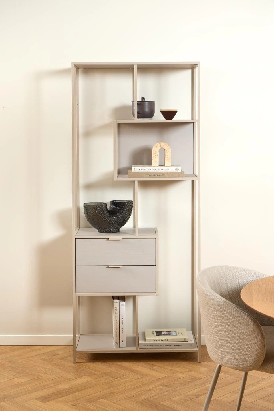 Jego asymetryczna konstrukcja przyciąga wzrok i pozwala na kreatywne aranżacje. Regał posiada sześć półek o różnych rozmiarach, co umożliwia estetyczne eksponowanie książek, roślin, dekoracji i innych przedmiotów. Dzięki otwartej konstrukcji, dostęp do przechowywanych rzeczy jest łatwy i wygodny.
