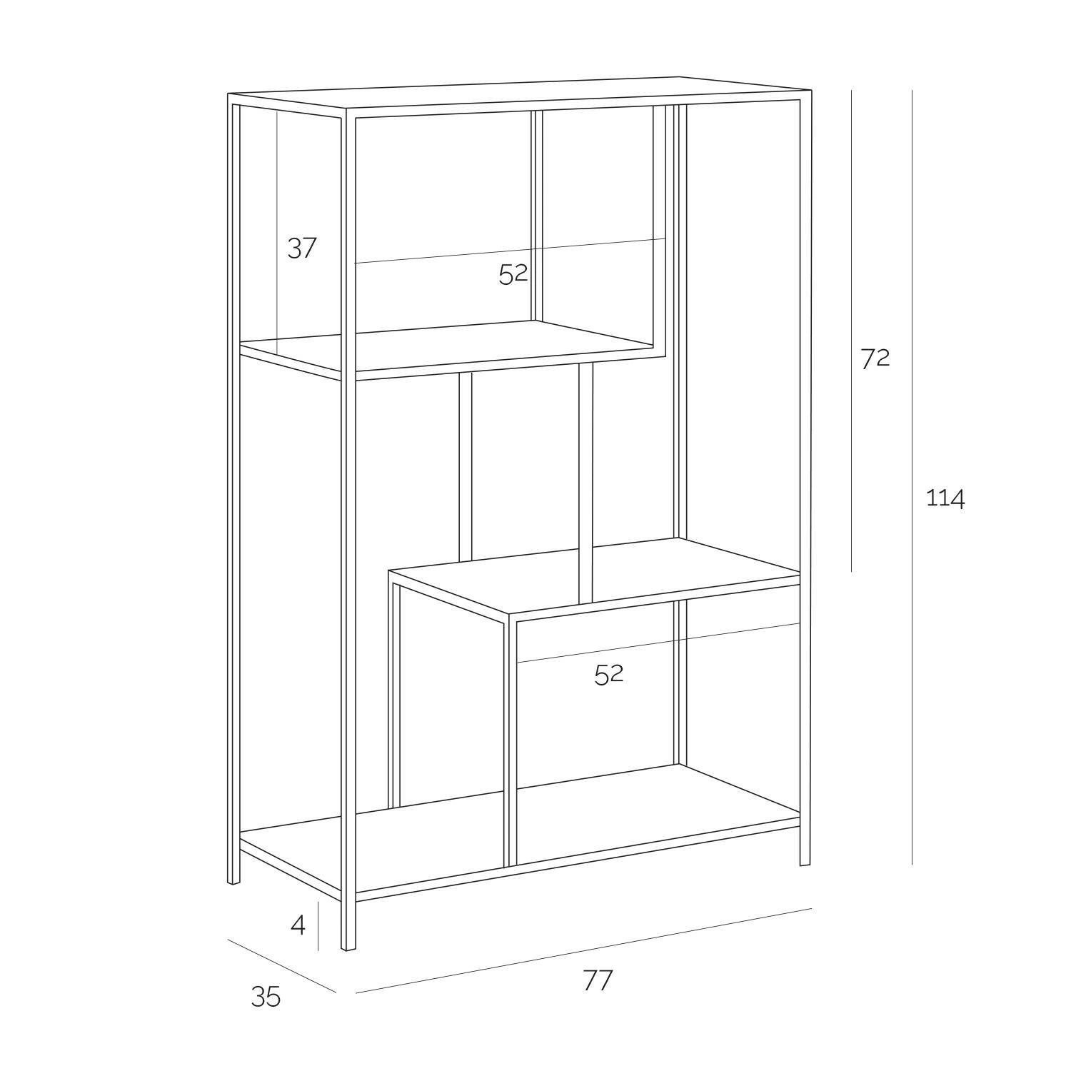 Regał Seaford to uniwersalny mebel do przechowywania i ekspozycji. Otwarta forma umożliwia łatwy dostęp do książek, dekoracji lub akcesoriów, jednocześnie nie przytłaczając wnętrza. Stabilna konstrukcja sprawia, że regał sprawdzi się zarówno w salonie, biurze, jak i sypialni. Nowoczesny design doskonale pasuje do aranżacji loftowych i skandynawskich.