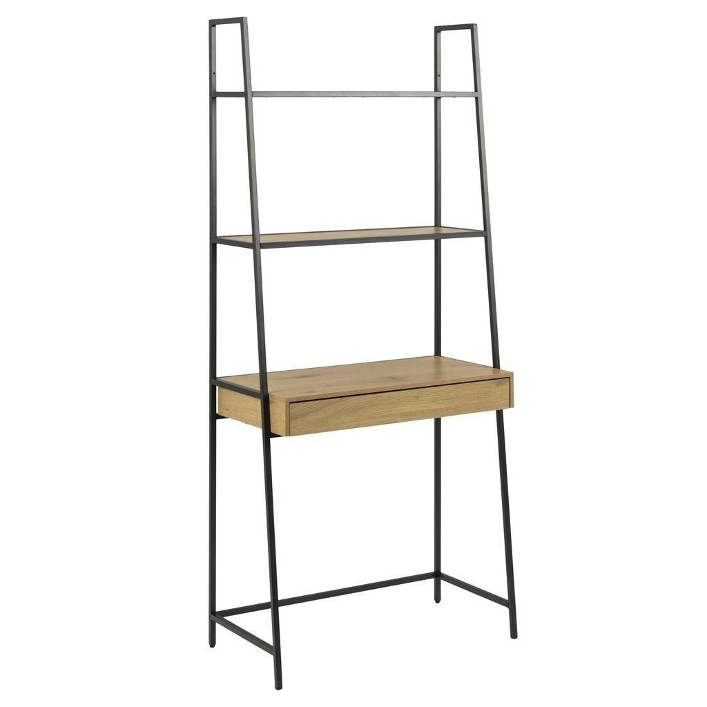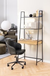 Regał Seaford to funkcjonalny mebel, który łączy estetykę z praktycznością. Wyposażony w dwie szerokie półki oraz głęboką szufladę, która może pełnić rolę blatu roboczego, regał oferuje wszechstronne zastosowanie. Metalowy szkielet na czterech stabilnych nóżkach z nakładkami zapewnia trwałość i nowoczesny wygląd, a dębowa okleina na półkach dodaje ciepła i elegancji.
