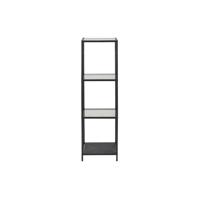 Regał Seaford VI w kolorze czarnego jesionu to elegancki i funkcjonalny mebel, idealny do nowoczesnych wnętrz. Wykonany z wysokiej jakości płyty MDF, pokrytej laminatem imitującym drewno jesionu, regał posiada solidną metalową ramę malowaną proszkowo na czarno. Wyposażony w pięć przestronnych półek, oferuje dużo miejsca na książki, dekoracje czy inne przedmioty codziennego użytku. Jego minimalistyczny design i industrialny charakter sprawiają, że doskonale nadaje się do salonu, sypialni czy gabinetu. Wymiary regału to 185 cm wysokości, 77 cm szerokości i 35 cm głębokości. Dzięki prostemu montażowi, regał Seaford VI jest praktycznym i stylowym dodatkiem do każdego wnętrza, łącząc estetykę z funkcjonalnością.
