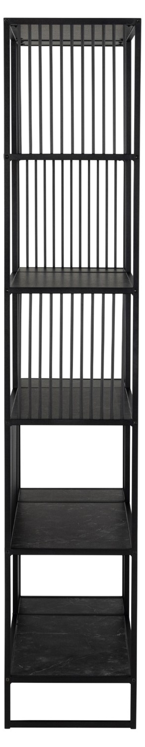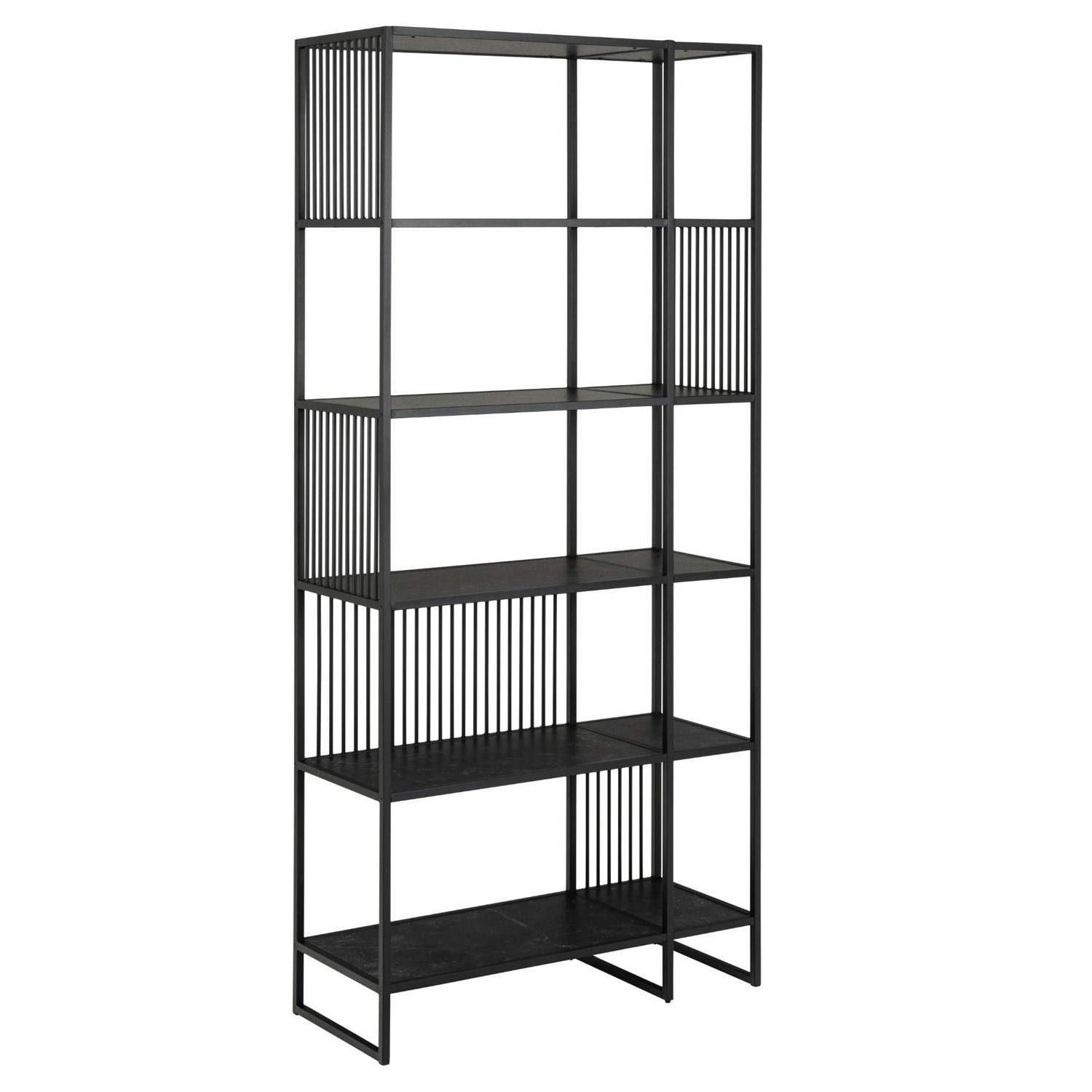 Regał Strington to wyjątkowy mebel, który łączy funkcjonalność z estetyką. Pięć półek wykonanych z MDF, ozdobionych efektem marmuru, oferuje dużo miejsca na przechowywanie dekoracji i sentymentalnych przedmiotów. Solidna stalowa rama z pionowymi drutami dodaje stabilności i elegancji, czyniąc regał idealnym do nowoczesnych wnętrz.