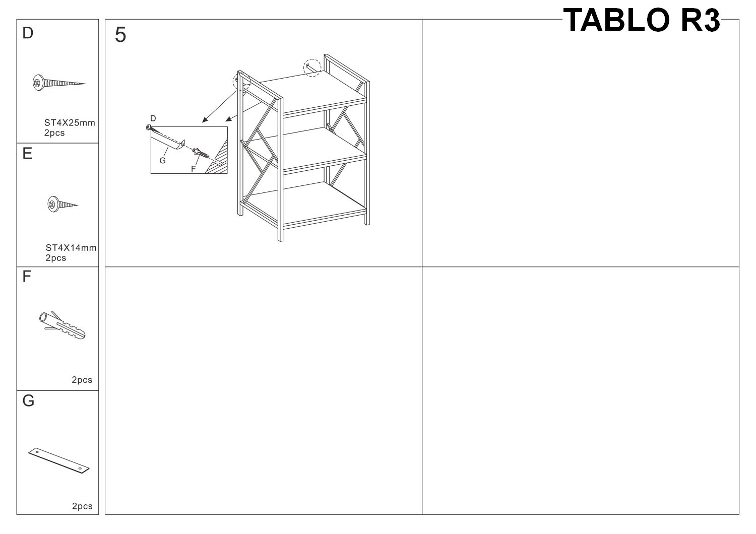 TABLO to reprezentant stylu loftowego, cechującego się surowością i funkcjonalnością. TABLO to regał wzorowany na klasycznych regałach warsztatowych z nutką awangardy przeniesioną na ciekawe wzory na bokach stelaża. Posiada trzy funkcjonalne półki wykonane z płyty MDF w dębowej okleinie. Stelaż wykonany jest z metalu pomalowanego proszkowo w kolorze ciemny brąz. Tworzy doskonały zestaw z innymi meblami z serii TABLO dostępnymi w naszej ofercie.