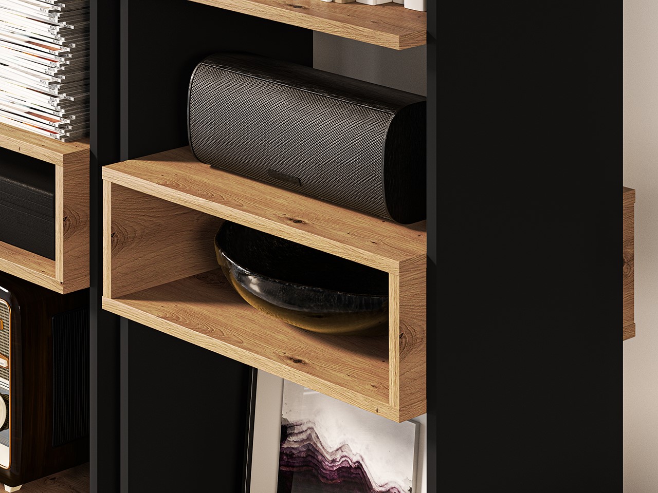 Regał wykonany z najwyższej jakości płyty laminowanej to doskonałe połączenie trwałości i stylu. Obrzeże ABS zapewnia dodatkową ochronę przed uderzeniami oraz wilgocią, co przedłuża żywotność mebla. Dzięki odporności na zarysowania i wysoką temperaturę, regał sprawdzi się w codziennym użytkowaniu, zachowując swój estetyczny wygląd na dłużej.
