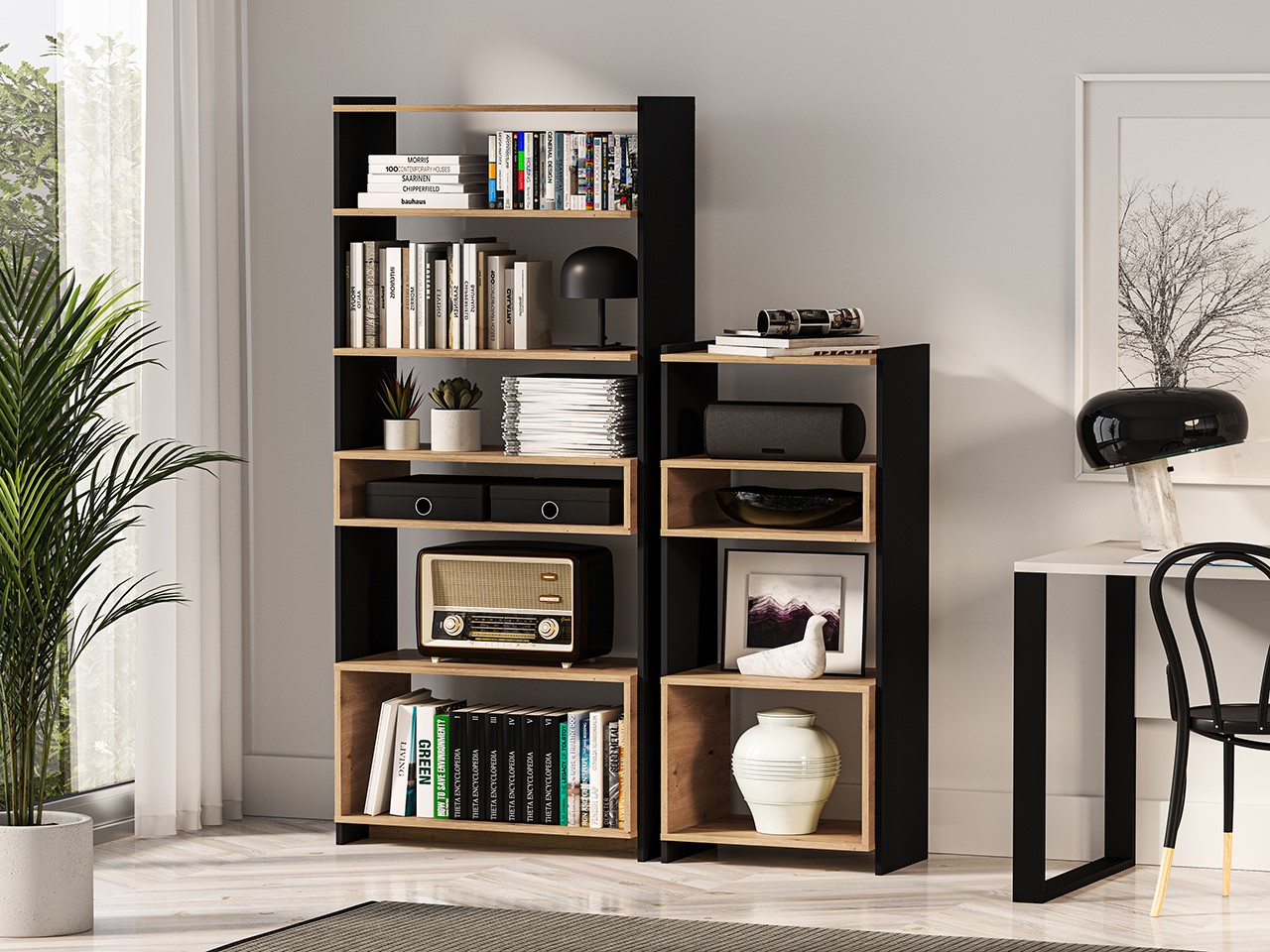 Regał wykonany z najwyższej jakości płyty laminowanej to doskonałe połączenie trwałości i stylu. Obrzeże ABS zapewnia dodatkową ochronę przed uderzeniami oraz wilgocią, co przedłuża żywotność mebla. Dzięki odporności na zarysowania i wysoką temperaturę, regał sprawdzi się w codziennym użytkowaniu, zachowując swój estetyczny wygląd na dłużej.