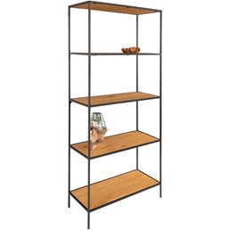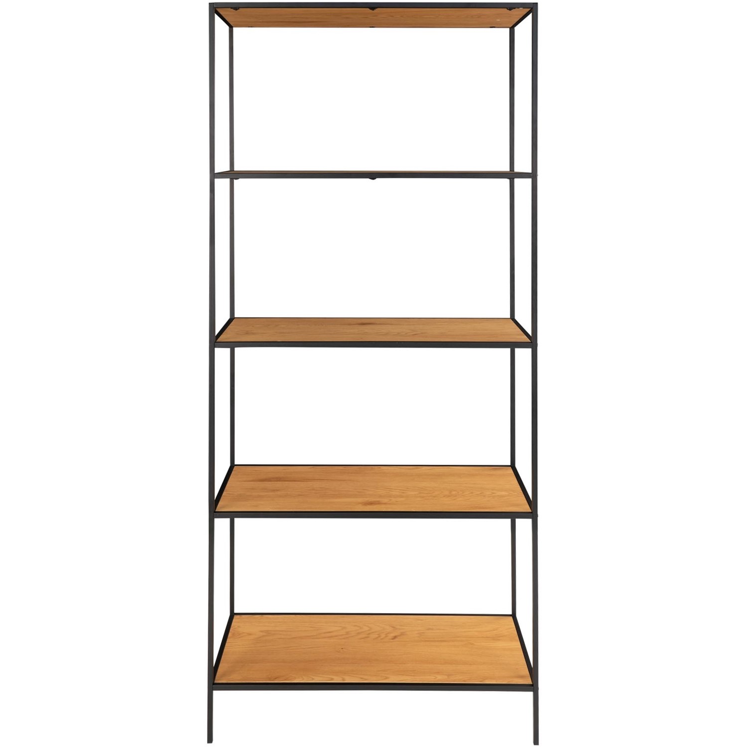 Regał Vita 5 półek dąb naturalny to elegancki i funkcjonalny mebel, który doskonale sprawdzi się w różnych pomieszczeniach, takich jak salon, sypialnia, biuro czy kuchnia. Wykonany z solidnego metalu malowanego proszkowo na czarno, regał Vita jest trwały i stabilny. Pięć półek z mocnej płyty wiórowej pokrytej okleiną imitującą dąb zapewnia naturalny wygląd i udźwig do 5 kg na każdą półkę.