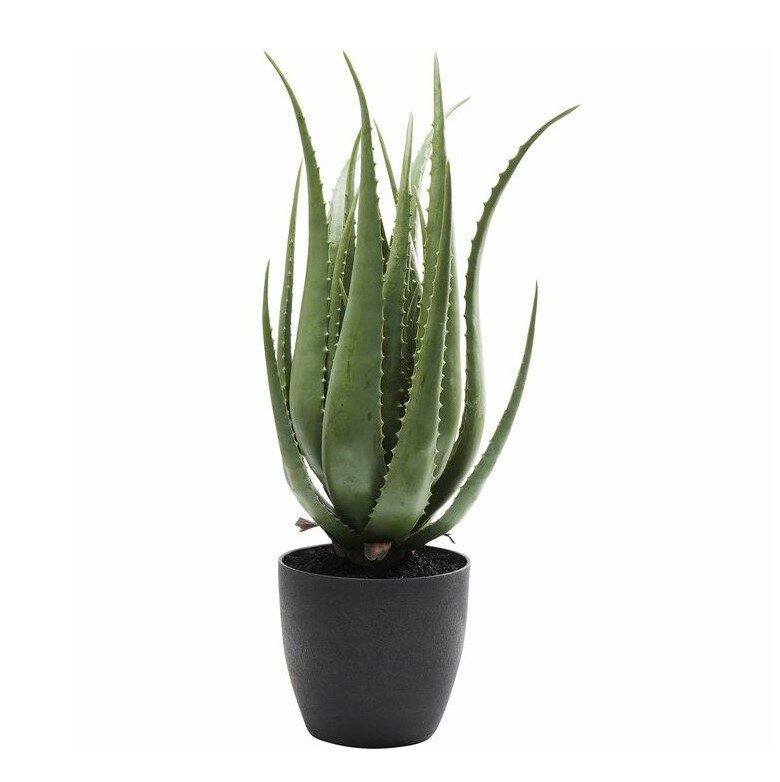 Piękne, zielone liście aloesu wykonano z octanu etylenu i winylu, a podstawę z polietylenu.
